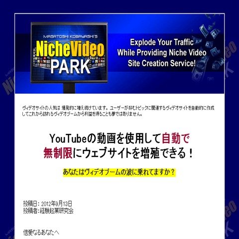 自動増殖型ニッチヴィデオサイトサービス提供システム!「Niche Video Park」