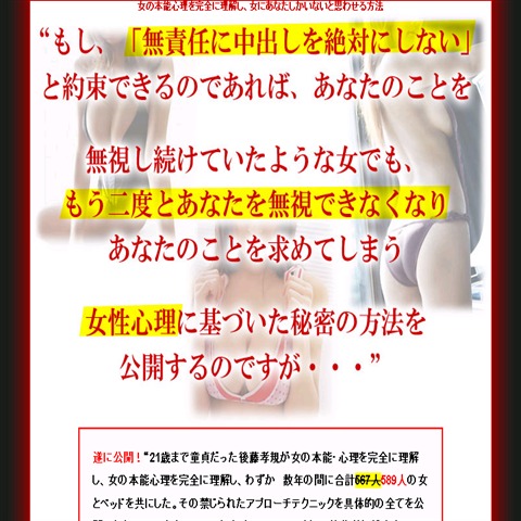 後藤孝規の女の本能心理を完全に理解し、女にあなたしかいないと思わせる方法■合計8時間39分の完全収録版■・・・・・≫続きはこちら