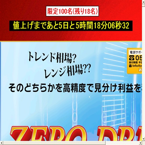 詐欺商材では、決して真似することが出来ない。ZERO DRIVE FX はリアルタイムでシグナルをサイトで公開してます・・・・・≫続きはこちら