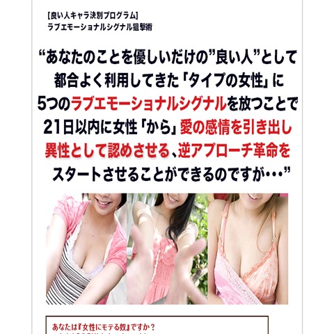 "あなたのことを優しいだけの”良い人”として都合よく利用してきた「タイプの女性」に5つのラブエモーショナルシグナルを放つことで21日以内に女性「から」愛の感情を・・・