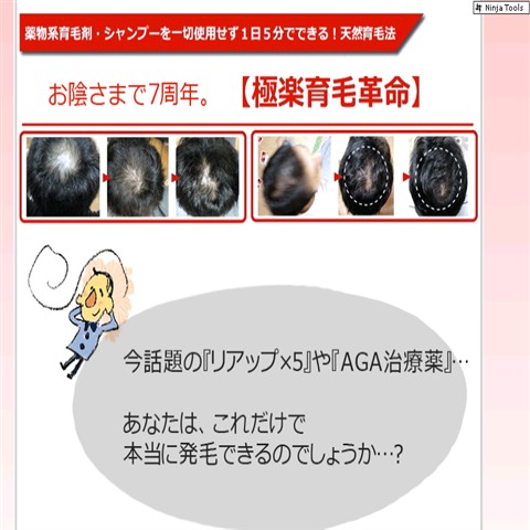 もうハゲとは言わせない!薬物系育毛剤・シャンプーを使わない超育毛・発毛術『極楽育毛革命』メールサポート付き