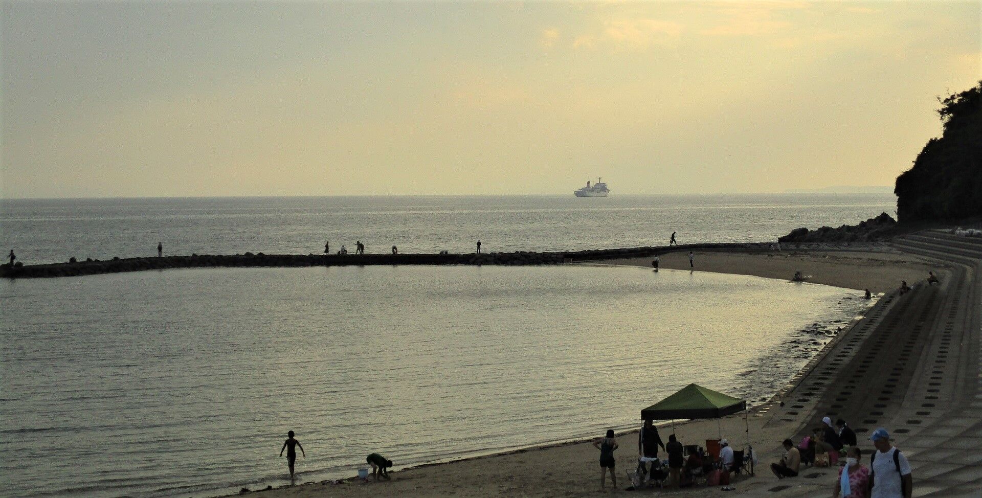 少し戻り、防波堤から海へ降りてみた