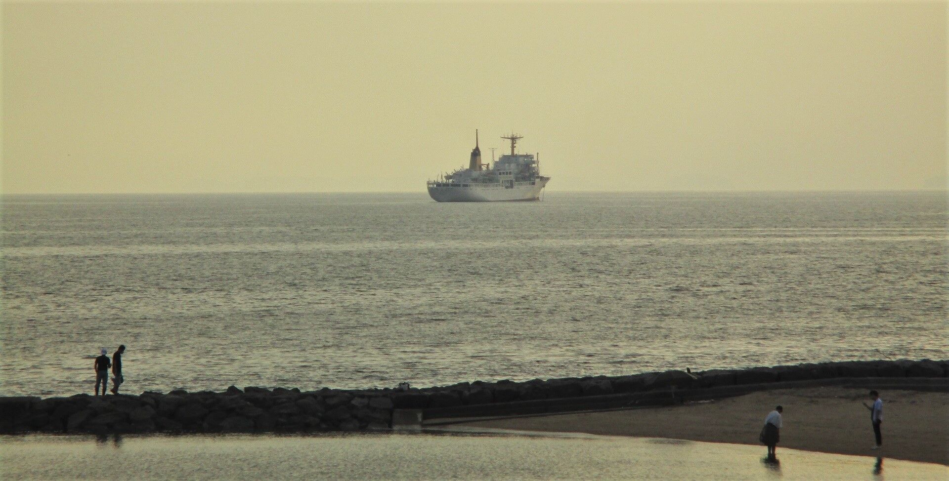 夕暮れ近く・・・何船?⚓を降ろし停泊している