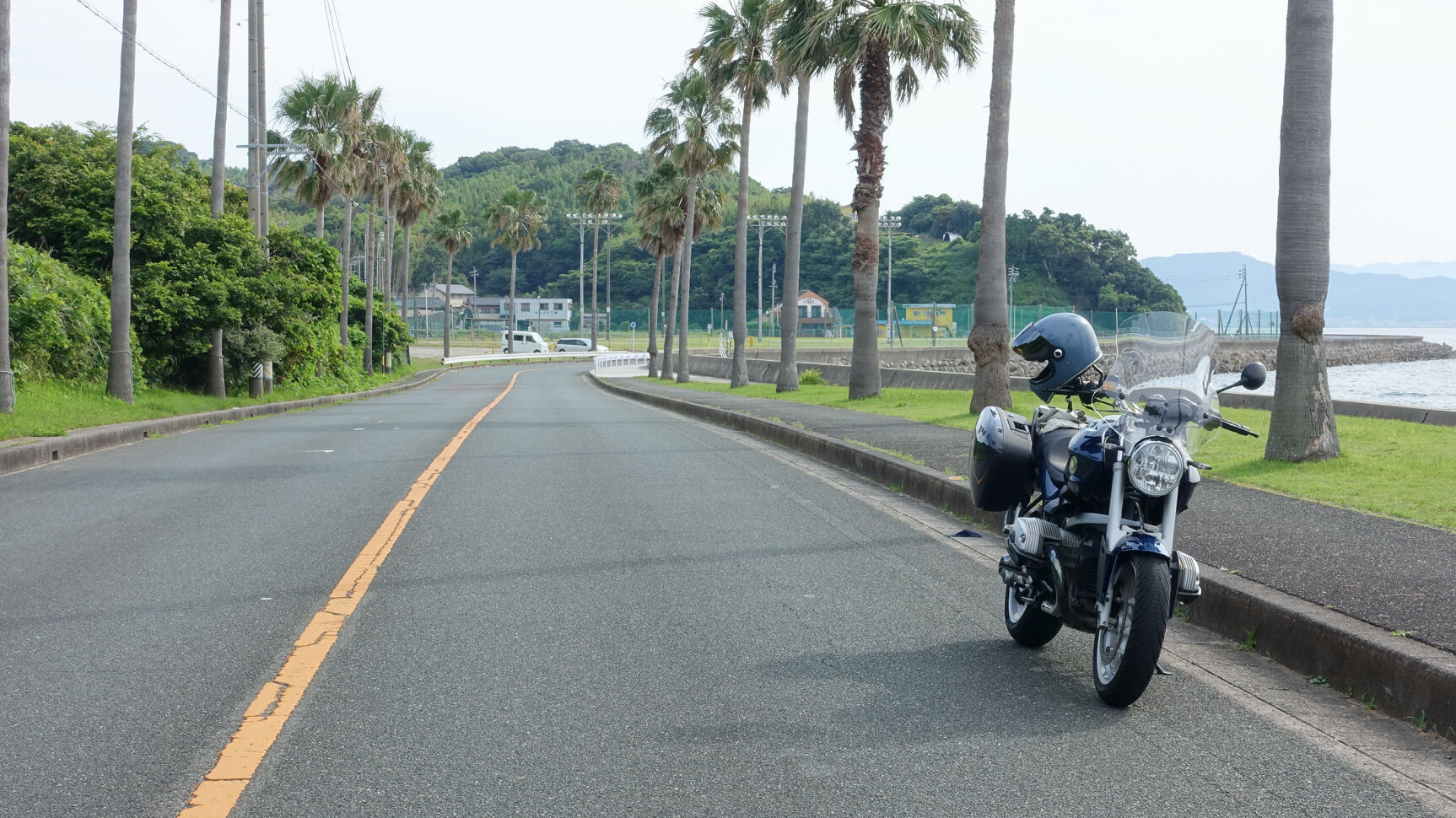 道路脇にBMWバイクを停め、BOSS缶を飲みながら・・・