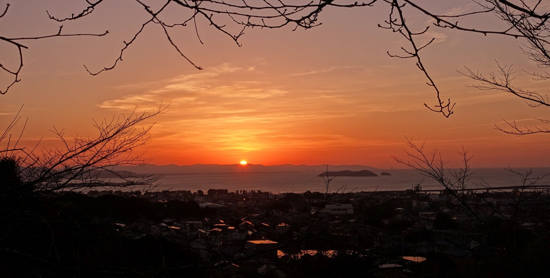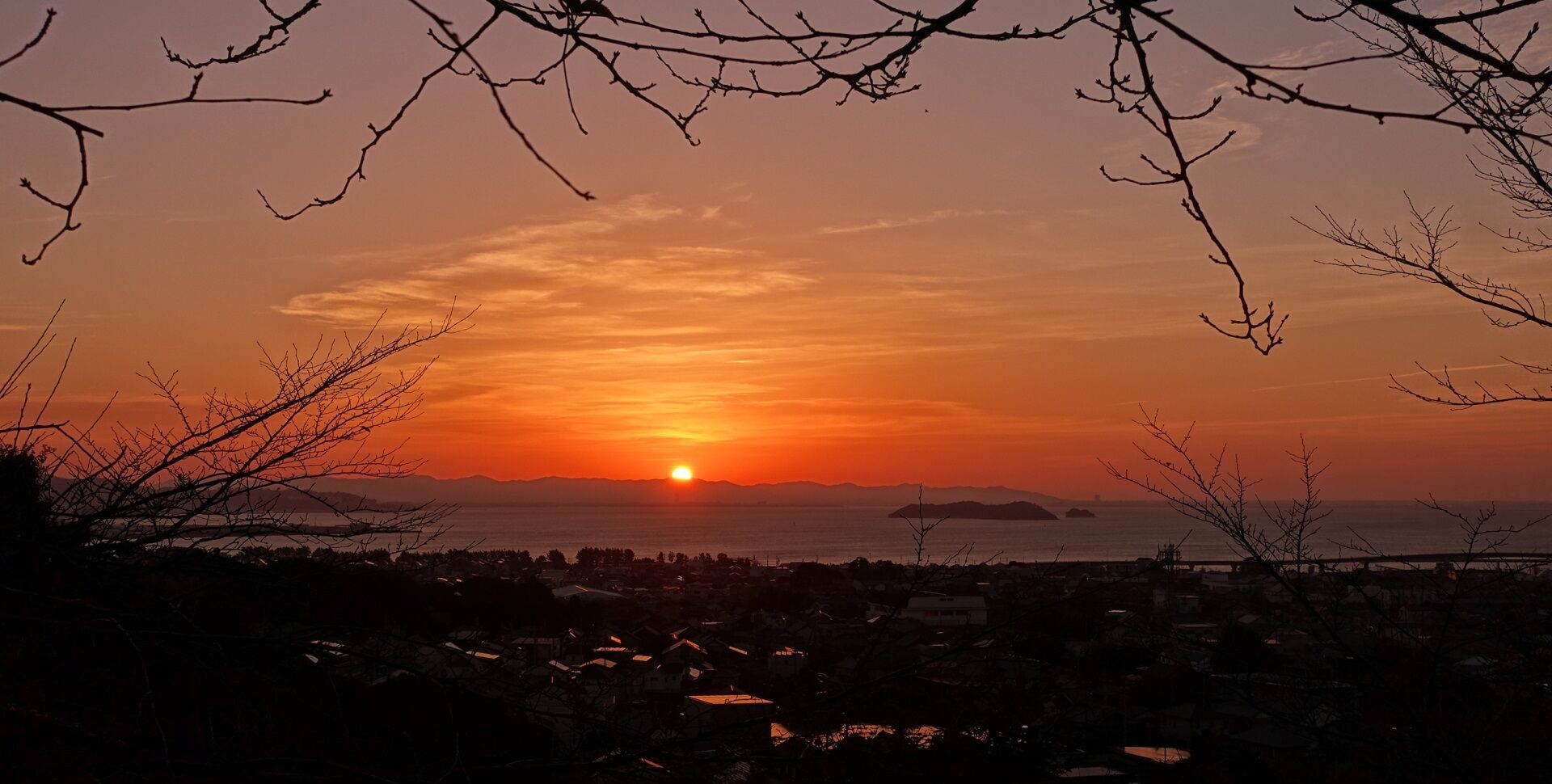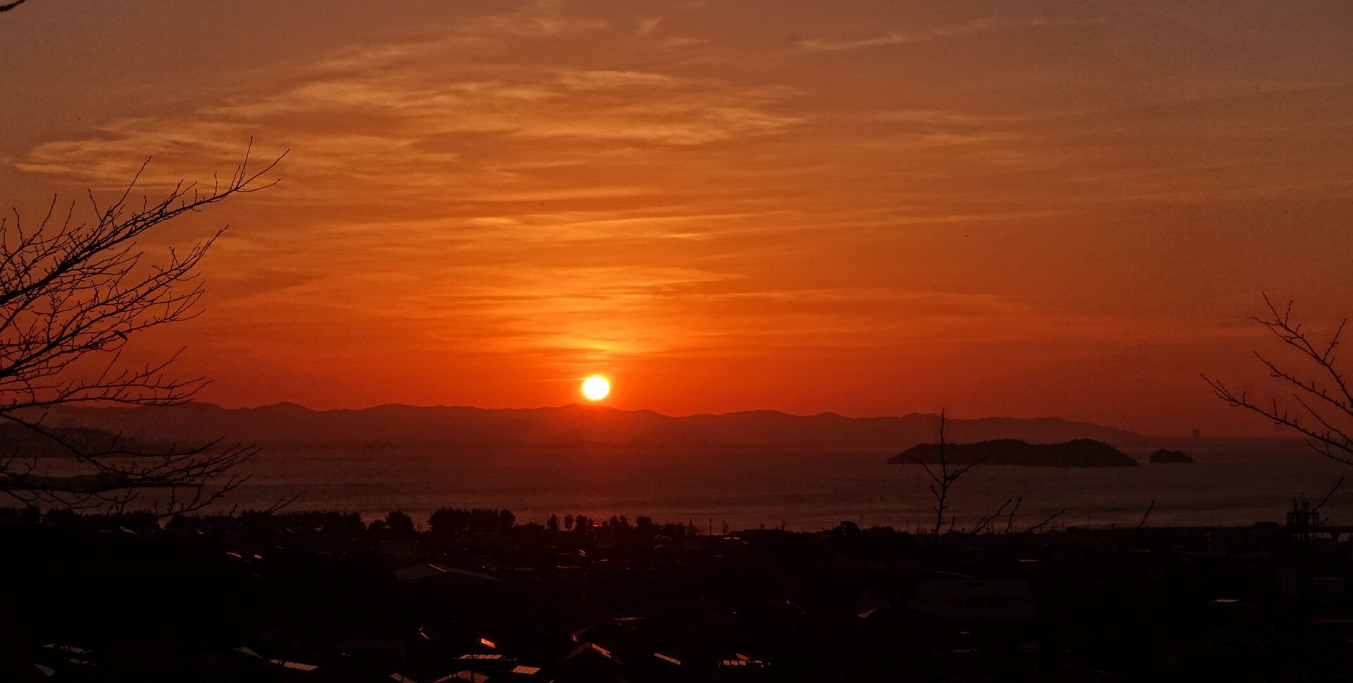 日の出 10月6日 三河湾先日の日の出です・・・10月6日 だんだんと空が焦げてきた・・・燃え燃え カメラの性能の一つにダイナミックレンジの幅の広さ・・・(*´ε`*)チュッチュ~のが有る 画像素子が表現できる光の明るさの段階の幅は、人間の目より低い 地球が丸いから山頂付近から燃え始める 出ました こうして日の出を撮ると手前の街並みは真っ黒(黒つぶれ)になってしまうのだが HDR撮影・・・ この日はたいやうの輪郭は今一はっきりしない それでもなかなか良い「日の出」でした