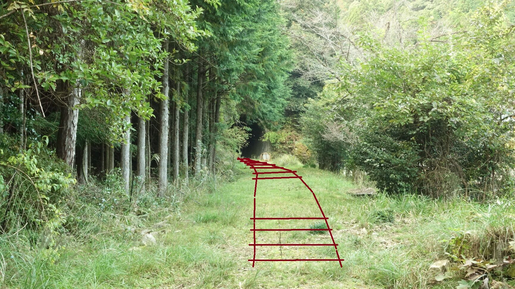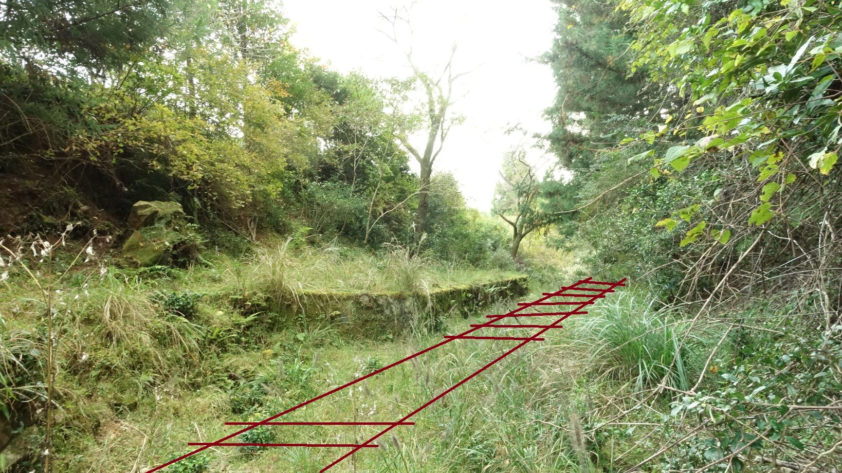 スマホで調べながら、、、下から見るとなんとなく線路っぽい地形が見えました