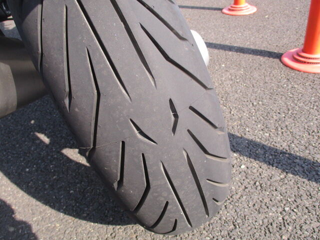 前のダンロップタイヤに比べてコーナーの倒れ込みがゆっくり感