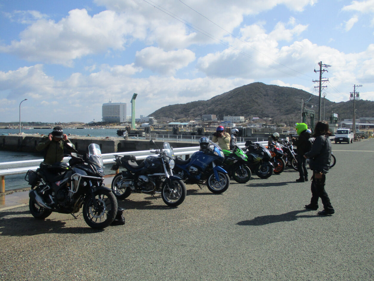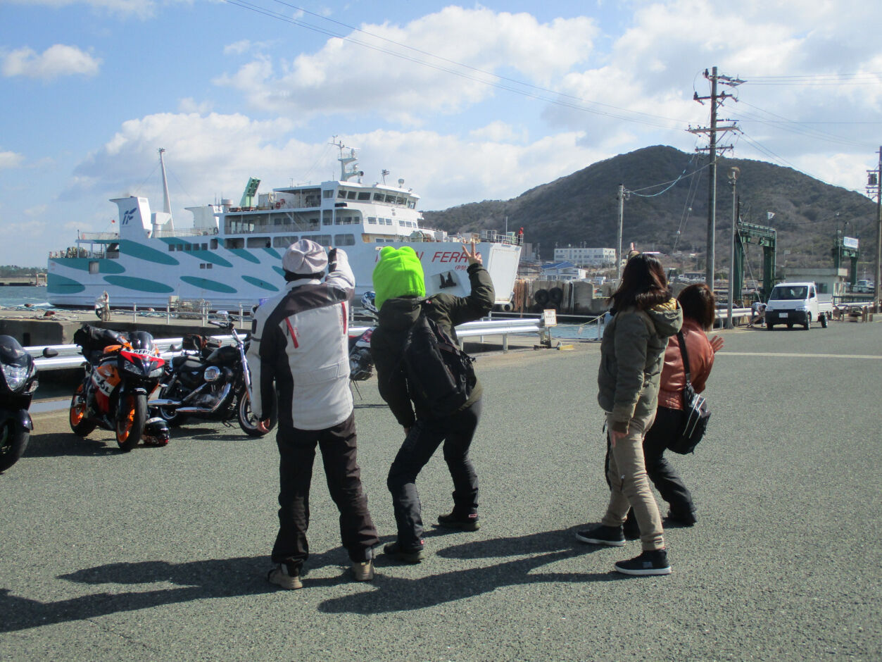 皆さん、フェリーをバックに・・・知り合いでも居るのかな?