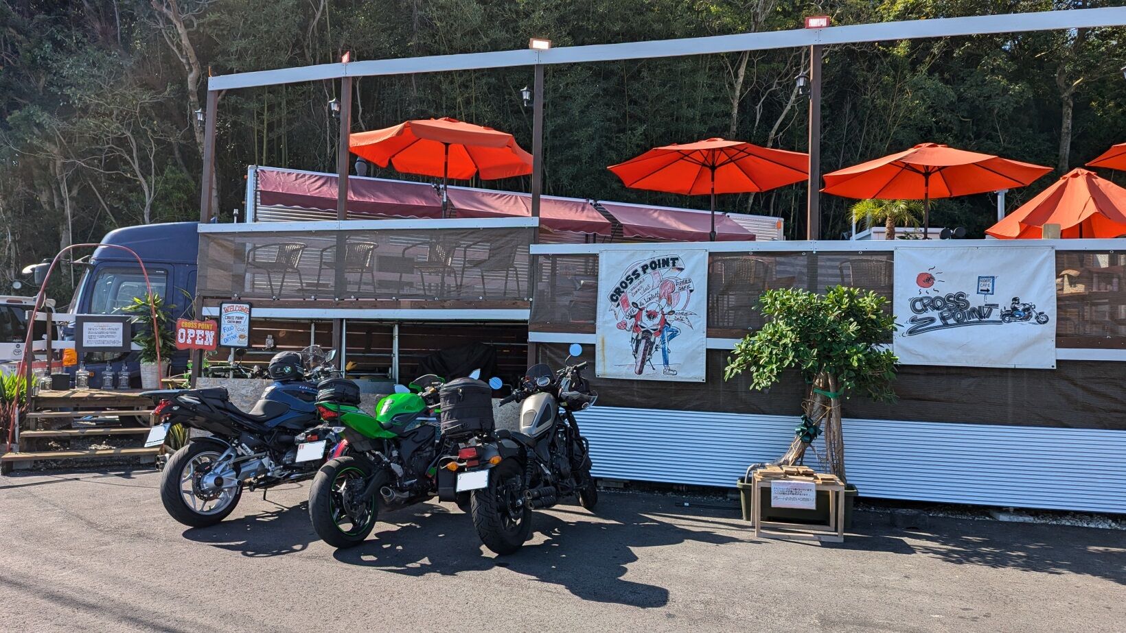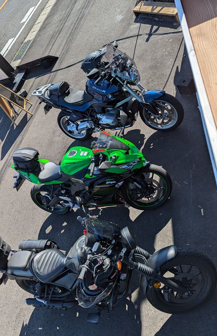 この日はBMW、kawasaki25R、レブル500