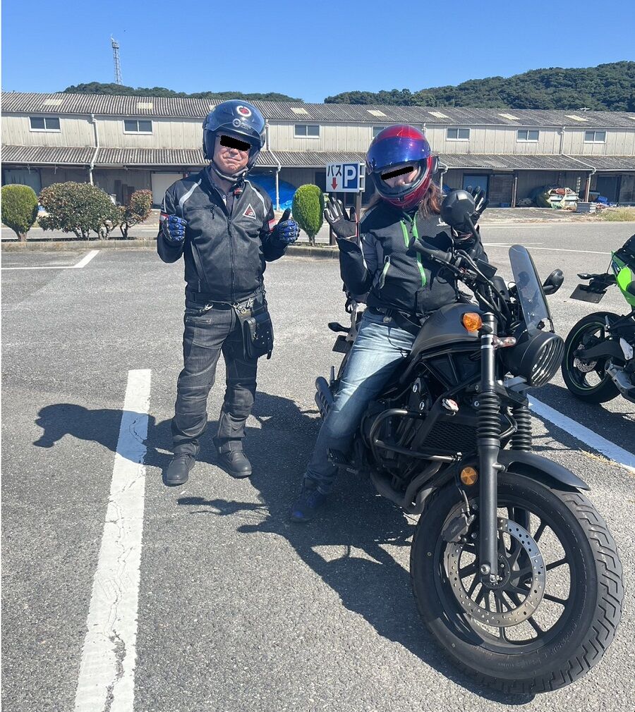 駐車場に戻り。レブル500試乗