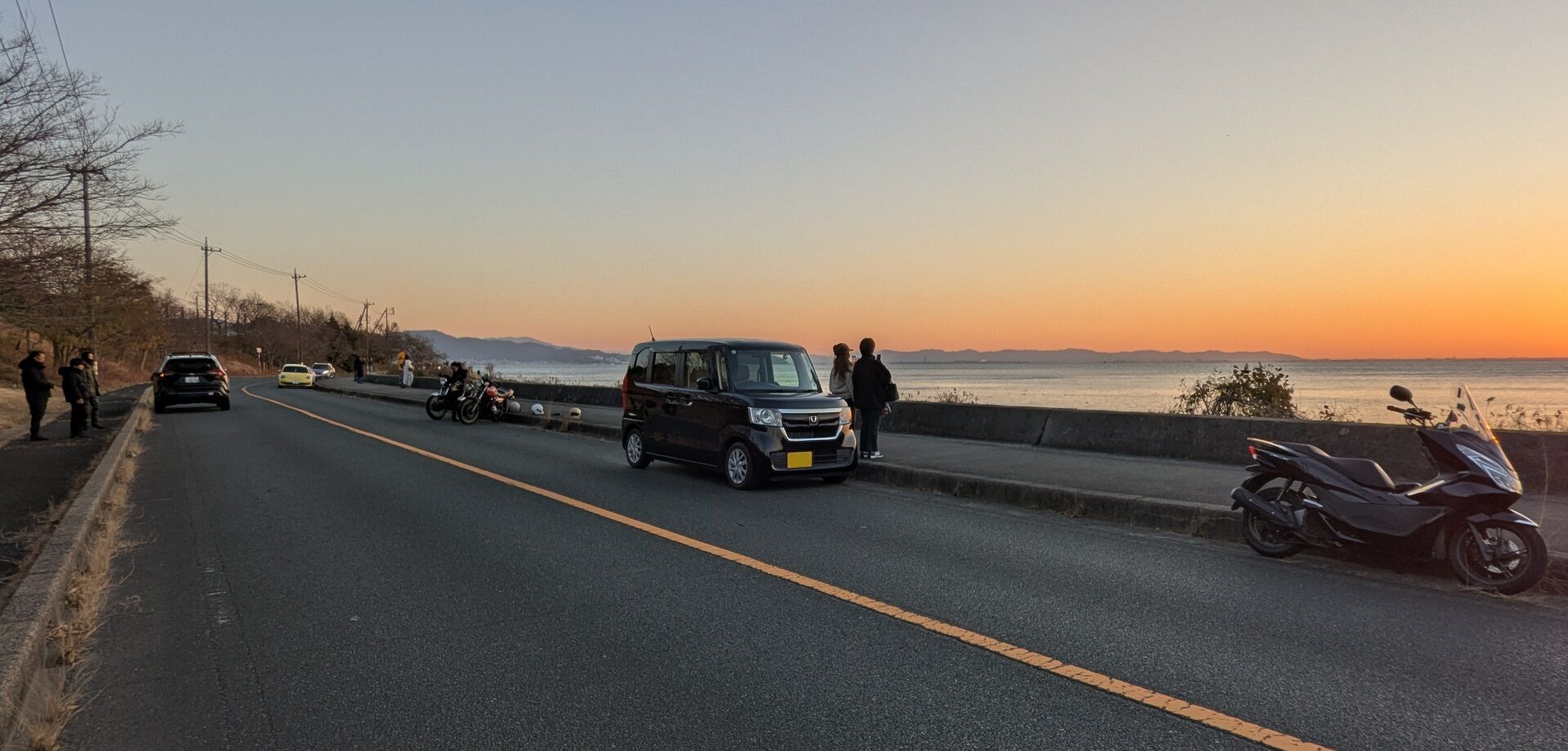 明けましておめでとうございます。PCX初乗り~☆新年あけましておめでとうございます。 元旦に日の出を拝みに行きました(@^^)/~~~ 寒い朝🥶 霞がかった好条件で真ん丸日の出・・・🌞 愛知県蒲郡市西浦町スパサーキット手前です 去年に比べ人出はパラパラ その後すぐに地元の神社に初詣です(^^♪ 今年は平穏無事に過ごせますように PCXの乗り初め完了です