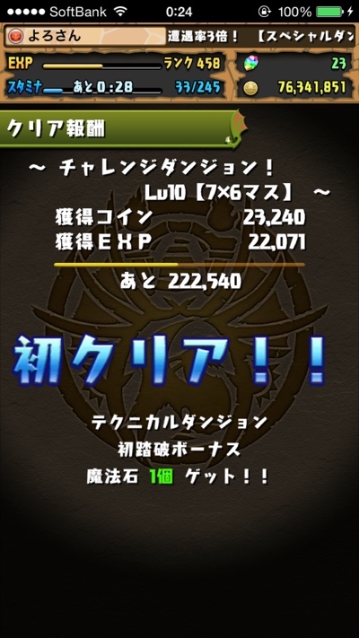 とりあえず4回目くらいの挑戦で、チャレダン10もクリア