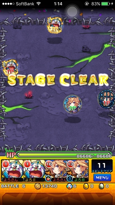 これまで事故死が何回かありましたが、このメンバーになってからたまに危なくはなるもののゲームオーバーは一回もありませんでした♪