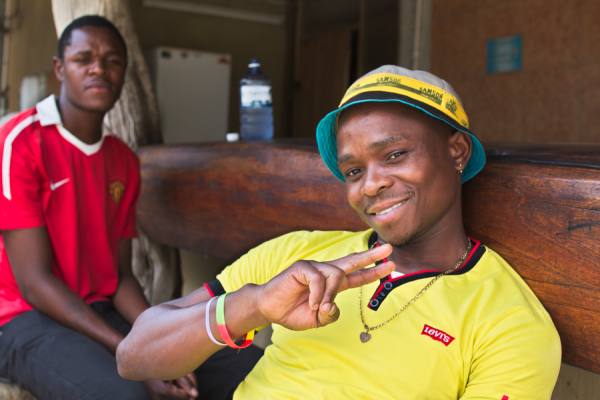 レセプションへ向かう道すがら出会った、宿で働いているお兄さんたち。