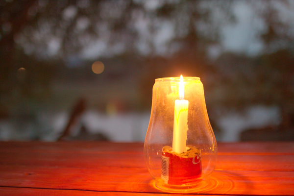 外にある全てのテーブルにはランプが灯されて何とも幻想的でした。