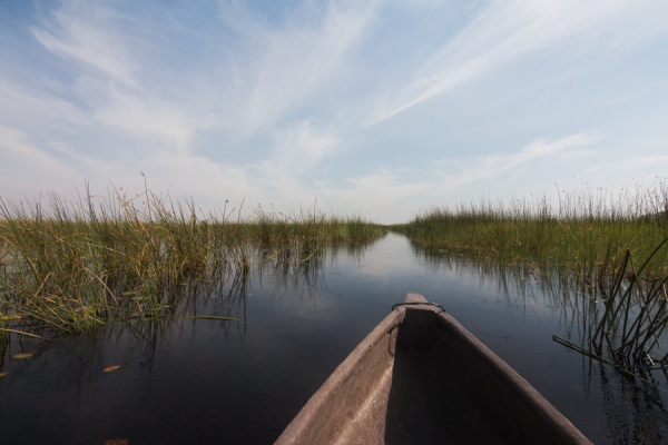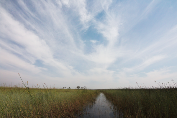 ここ、オカバンゴデルタは、ボツワナ・ナミビアの北に位置するアンゴラから流れてきた川が作り出す巨大な湿地帯で、