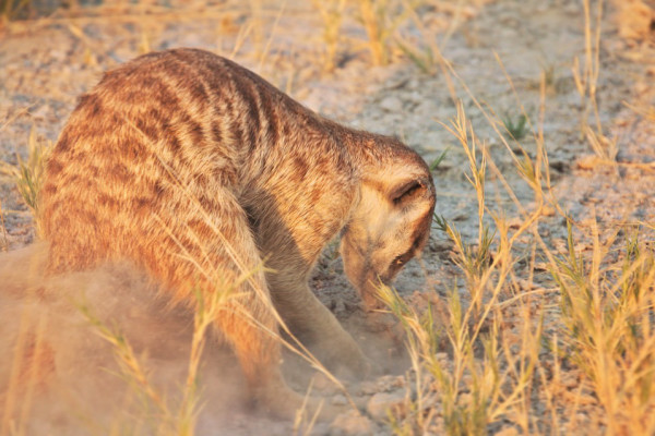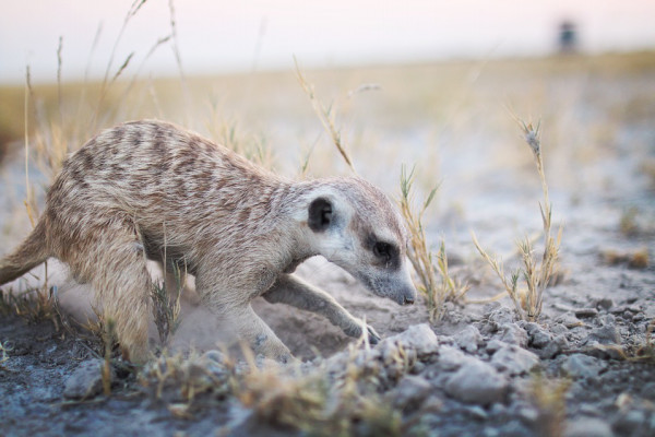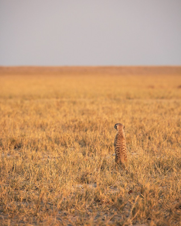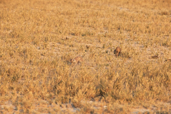 広大な草原の中、目を凝らすと「カサカサ」と音をたててるミーアキャットが沢山!!