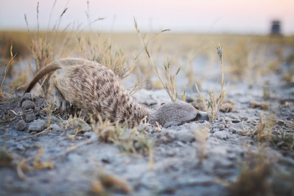 ミーアキャット達は一斉に巣へ帰っていきます。