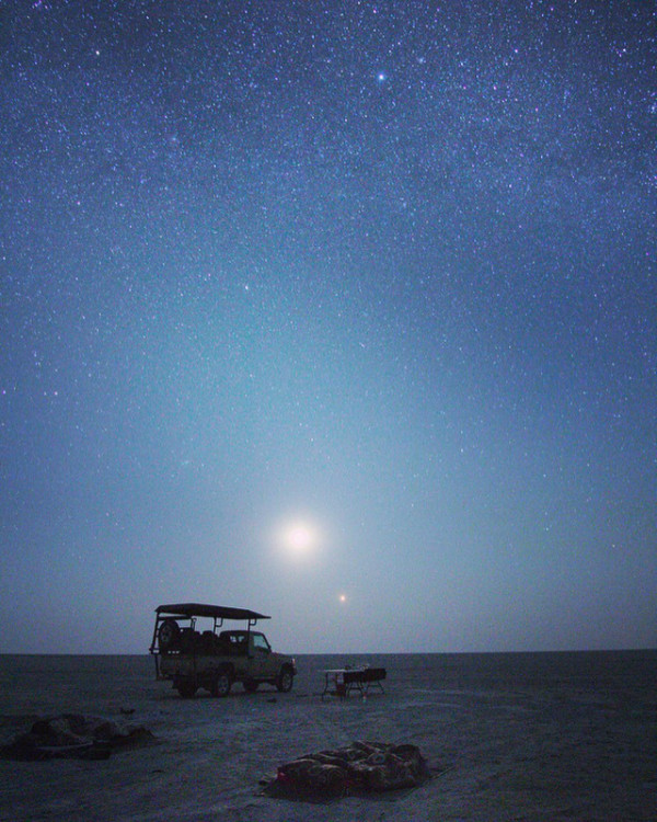 本当に何もない地平線、暗闇の中で頭上には満天の星。