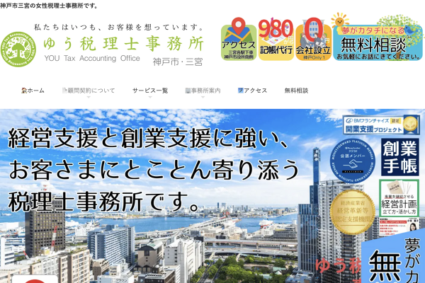 ゆう税理士事務所神戸三宮です!よろしくお願いします。兵庫県は神戸市の三宮のゆう税理士事務所神戸三宮です。 ゆう税理士事務所神戸三宮神戸の税理士なら経営支援と創業支援に強い、ゆう税理士事務所。三宮・神戸市役所スグ。『私たちはいつもお客さまを想っています』を胸に1000件を超える無料相談。代表は女性税理士の小林優子。u-accounting.co.jp