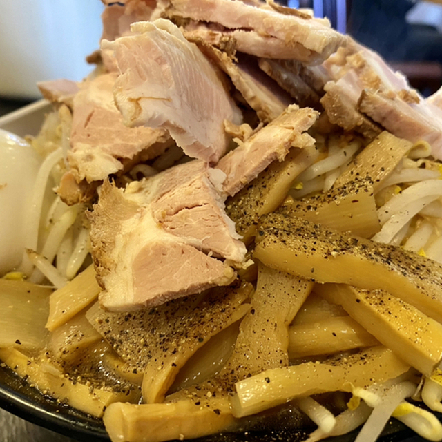 TGマルヤマと私2人とも大好きなお店、チャーシューはホロホロ崩れる系、ワシワシモグモグ太めの麺とモヤシもシャッキシャキ……