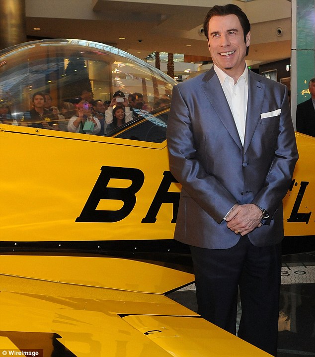 High flyer: John is the perfect brand spokesman as he is a certified pilot with over 40 years of experienceHe even kept a small horde of fans amused with some of his trademark one-liners as he gave a speech in front of a miniature aeroplane.