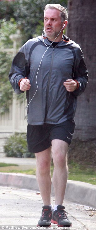 Keeping fit: Chris Moyles was seen going for a jog in LA showing off his slim figure