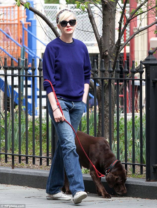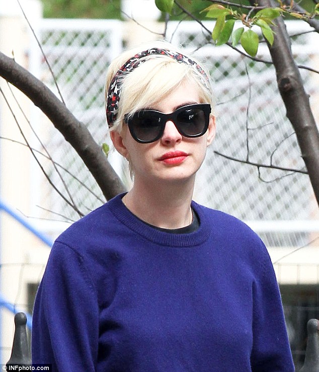 Party's over: Life returned to normal for Anne Hathaway Tuesday morning when the bottle blonde was spotted walking her beloved chocolate Labrador, Esmeralda, in Brooklyn