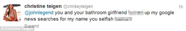 'My tummy hurts and I think it's the chicken you made me last night,' Chrissy tweeted to the R&B singer.