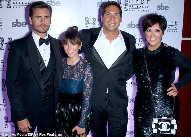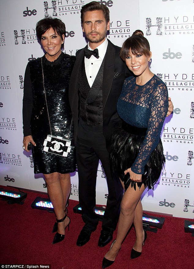 Dressed-up trio: Kris donned sequins while Kourtney was fashioned in feathers, and Scott stuck to a classic three-piece suit