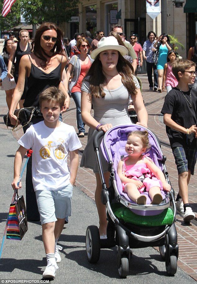 But Victoria Beckham didn't seem to mind as she braved the crowds on Monday to take her brood for a day out to popular shopping hotspot The Grove in LA.