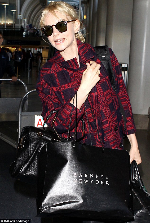 She's got her hands full! Carey Mulligan made her way through LAX on Saturday with several heavy bags in towAt first it seemed as if only two leather tote bags and a Barney's New York shopping bag were weighing her over.