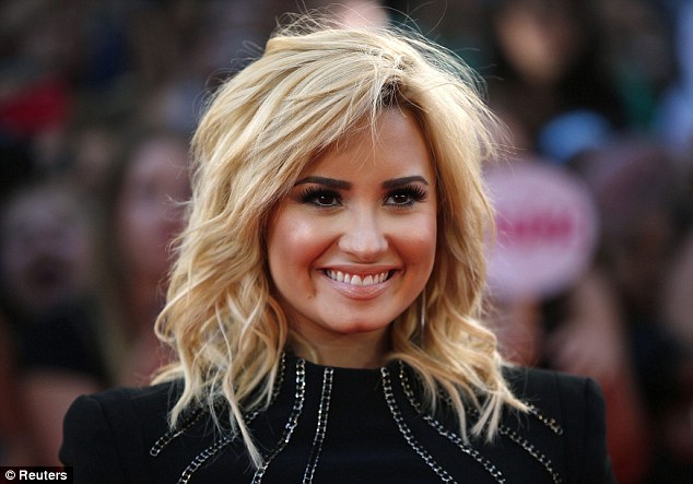 Demi Lovato - now a blonde - was seen earlier in the day rehearsing in the open air, wearing a denim shirt over a black and white polka dot dress and black tights.