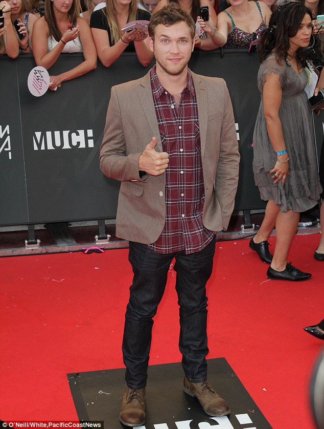Thumbs up: Phillip Phillips, the Georgia-born winner of American Idol, looked smart in red plaid, jeans, dress jacket and rugged brown shoes