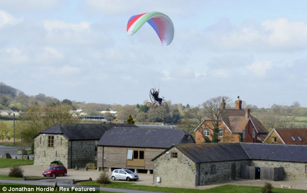 Comprising an ungainly mix of a bike with wings, a fan, a motor and a parachute, the invention, known as a Paravelo, can reach 4,000ft and speeds of up to 25mph.