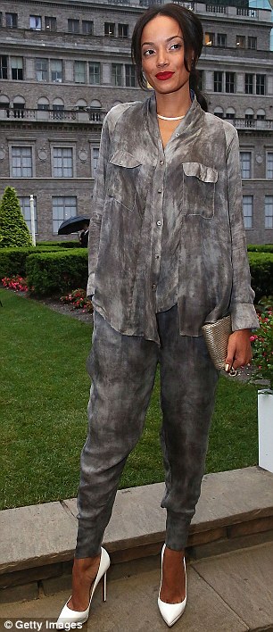 Fellow catwalk star Selita Ebanks showed up at the venue in a grey trousers and long shirt set.
