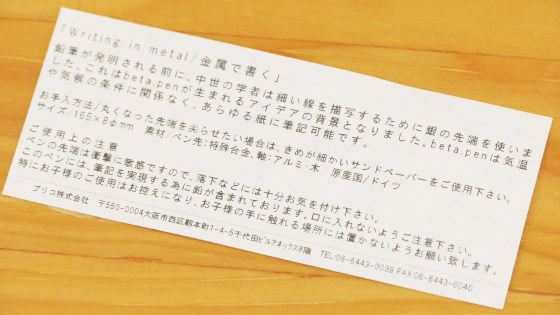 鉛筆が発明される前は細い線を引くために銀が使用されていた、というアイデアを現代に復活させ、特殊合金を使って天候や紙の種類を問わずインクの補充や鉛筆削りなしで書き続けることができるのが「beta,pen」です。「これが本当ならbeta,penが1本あるだけで、もうペンを購入する必要がないのでは?」ということで、実際に購入して書き心地を確かめてみました。