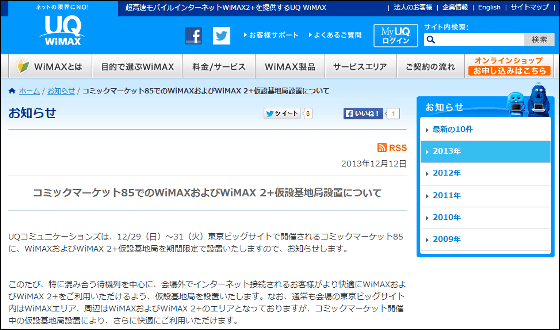 コミックマーケット85でのWiMAXおよびWiMAX 2+仮設基地局設置について | UQ WiMAX|超高速モバイルインターネットWiMAX2+