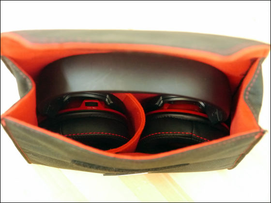 イヤーパッドは厚手のタイプとなっており、赤い糸のステッチが入っています。