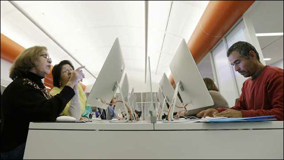 人口の約半数をヒスパニック系が占め、全米でも大きな都市に分類される街ですが、住人の識字レベルのランクが全米で60位と低く、地域の住宅にはネット回線すら調っていないという状況でした。それが今では大きく改善され、オープン1年目の来館者数は10万人を超えるペースで推移しており、近辺の高校の授業が終わった時間帯になると、端末の空きを見つけるのが非常に難しくなってしまうほど。貸出用のeブックリーダーの稼働率は常に50%を超えているそうです。