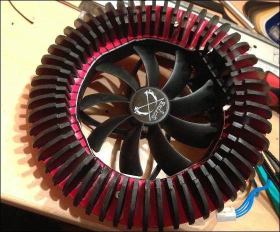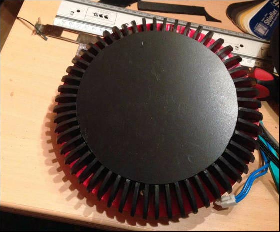 Mac Proレプリカは、本物のMac Proと異なりトップ・ボトムの2ファン構成。こちらはボトムファンの様子。ファンは日本のサイズ製。