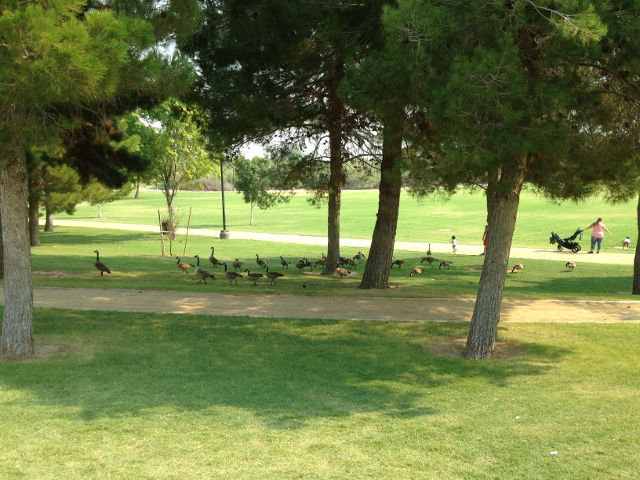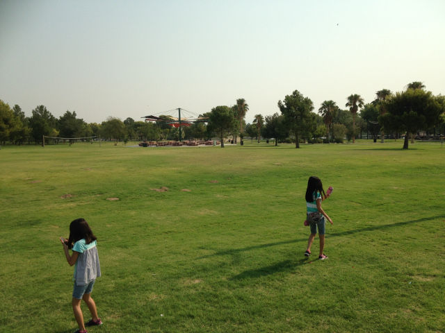 近所の公園でポケモンGOをしてきました。アメリカはどこへ行くにも車が必要なので、子供たちがポケモンGOを遊ぶためには親が車を出さないといけません。ポケモンサービス開始直後の夜は数千人のポケモンハンターが集まっていたというサンセットパーク。朝は人影もまばらです。スマホを手に歩いている人は全員ポケモンをしているように見えてしまいます。本物の野生動物が目の前にたくさんいるのに、バーチャルなポケモンを探して回るというのも、ちょっとシュールな感じがします。朝の10時には気温が急上昇して摂氏40度近くになってきたので、子供たちに文句を言われながら慌てて引き上げてきました。