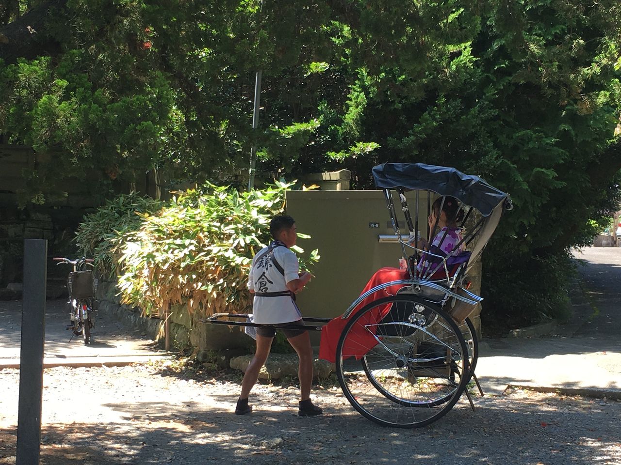 鎌倉を歩いていると人力車をよく見かけます。着物を着ている気合が入った観光客が多く見かけられます。外国人観光客も多いです。