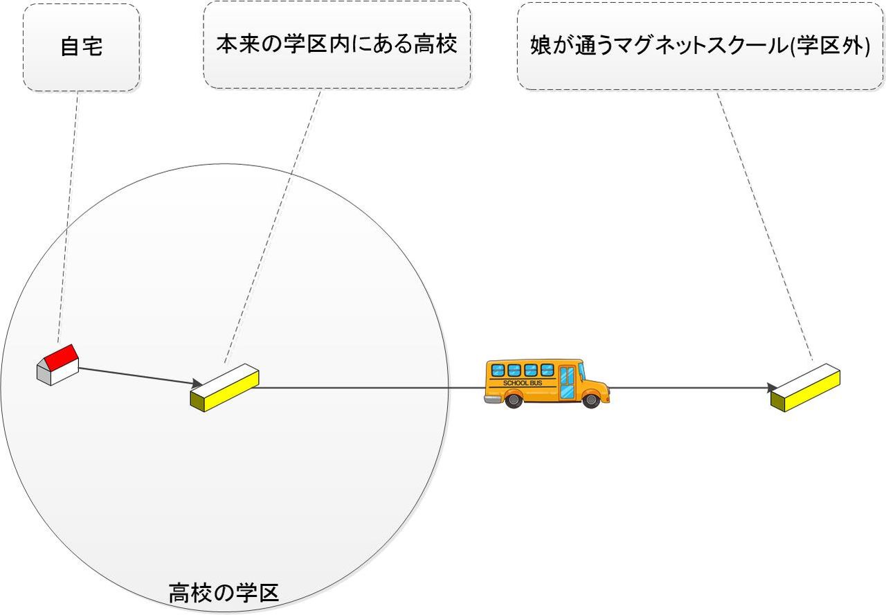 学区内の高校に通う生徒たちは自宅の近くまでバスが来てくれます。マグネットの生徒たちは親の送迎で学区内にある高校に一旦集まり、そこからまとめてスクールバスに乗る形になります。