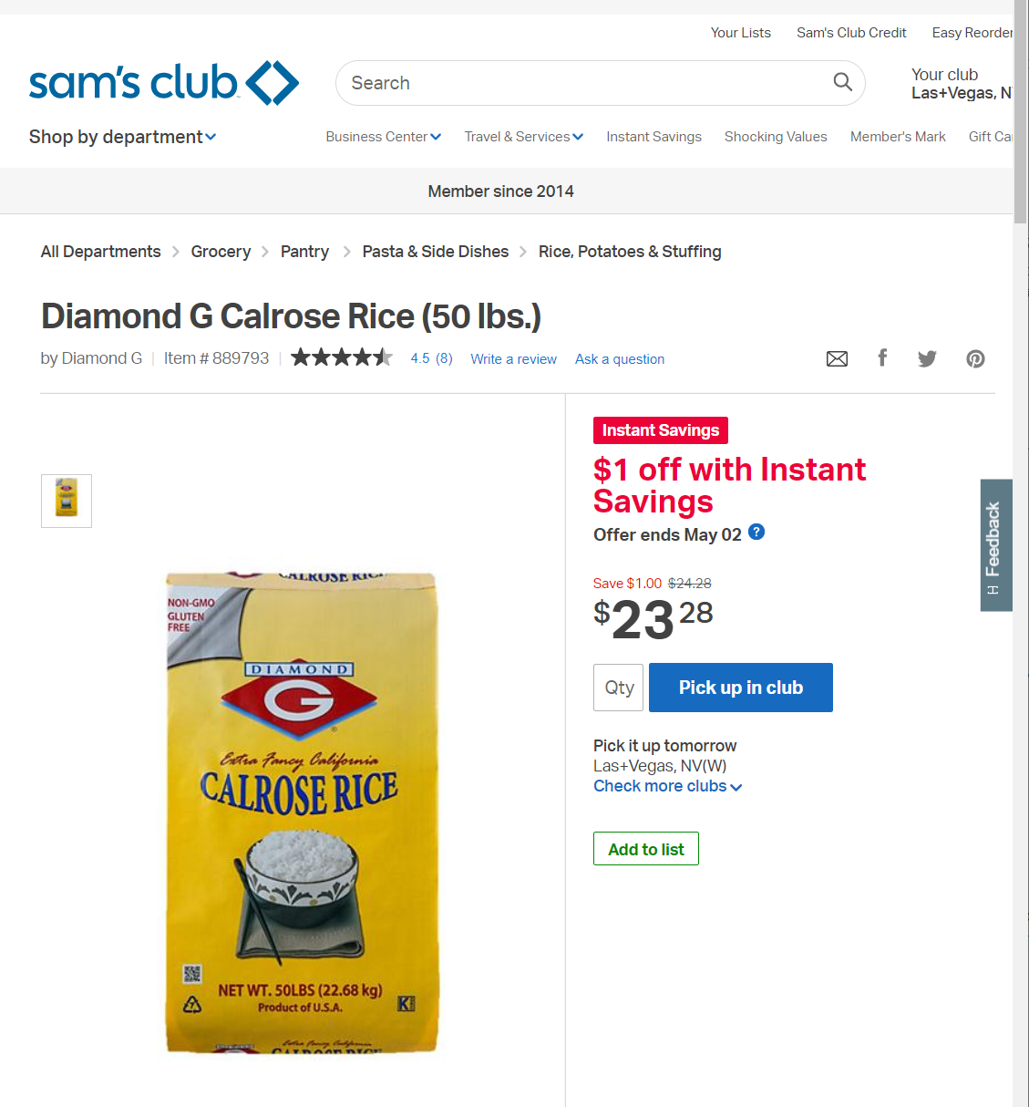 サムズクラブのサイトでは通販もできるのですが、お米は重たいためか通販の対象外。でも先払いで取りおいてもらうことができます。