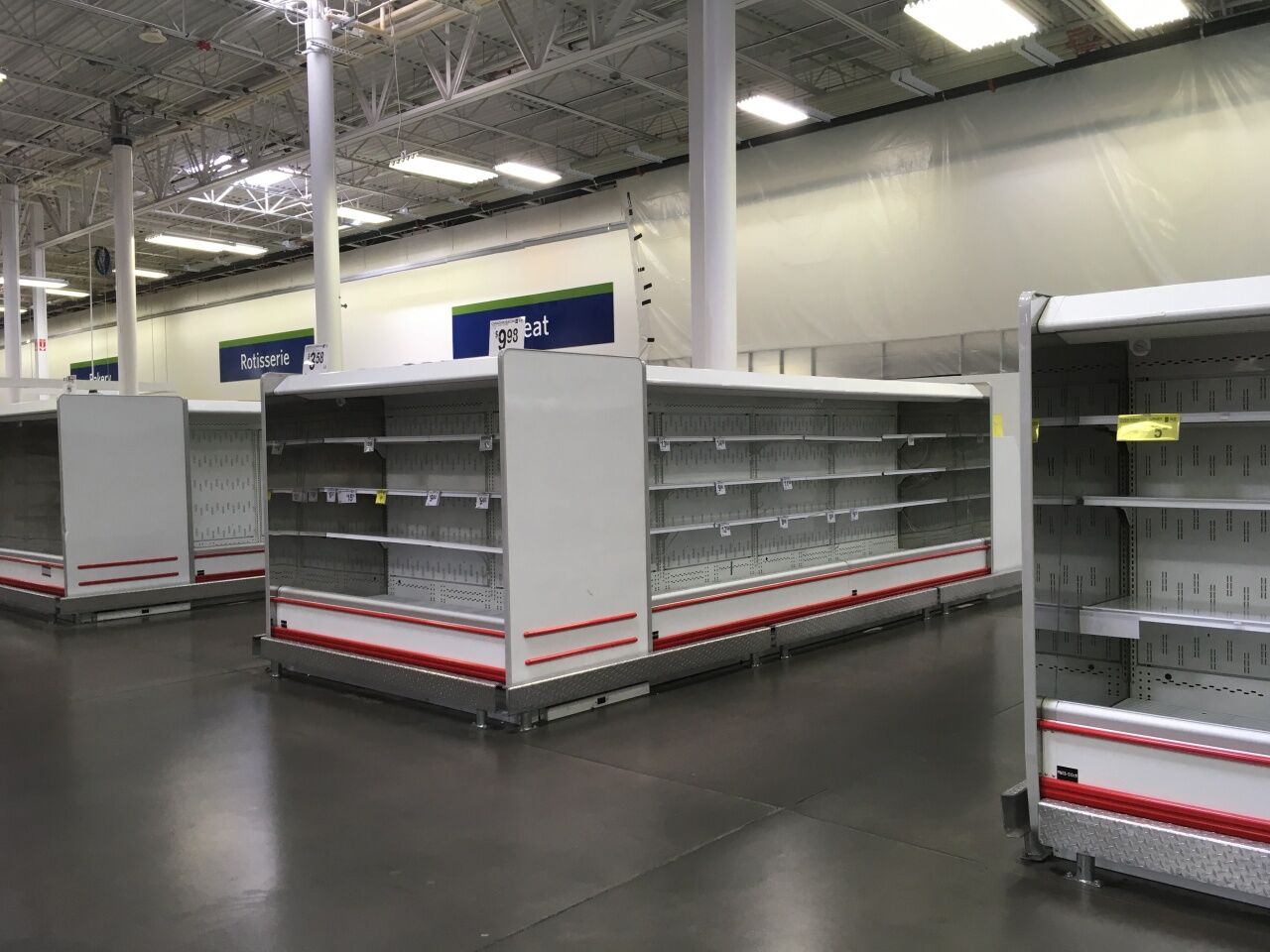 入り口では店員がカートやカゴを1つ1つ丁寧に拭いています。対策してますよアピール。