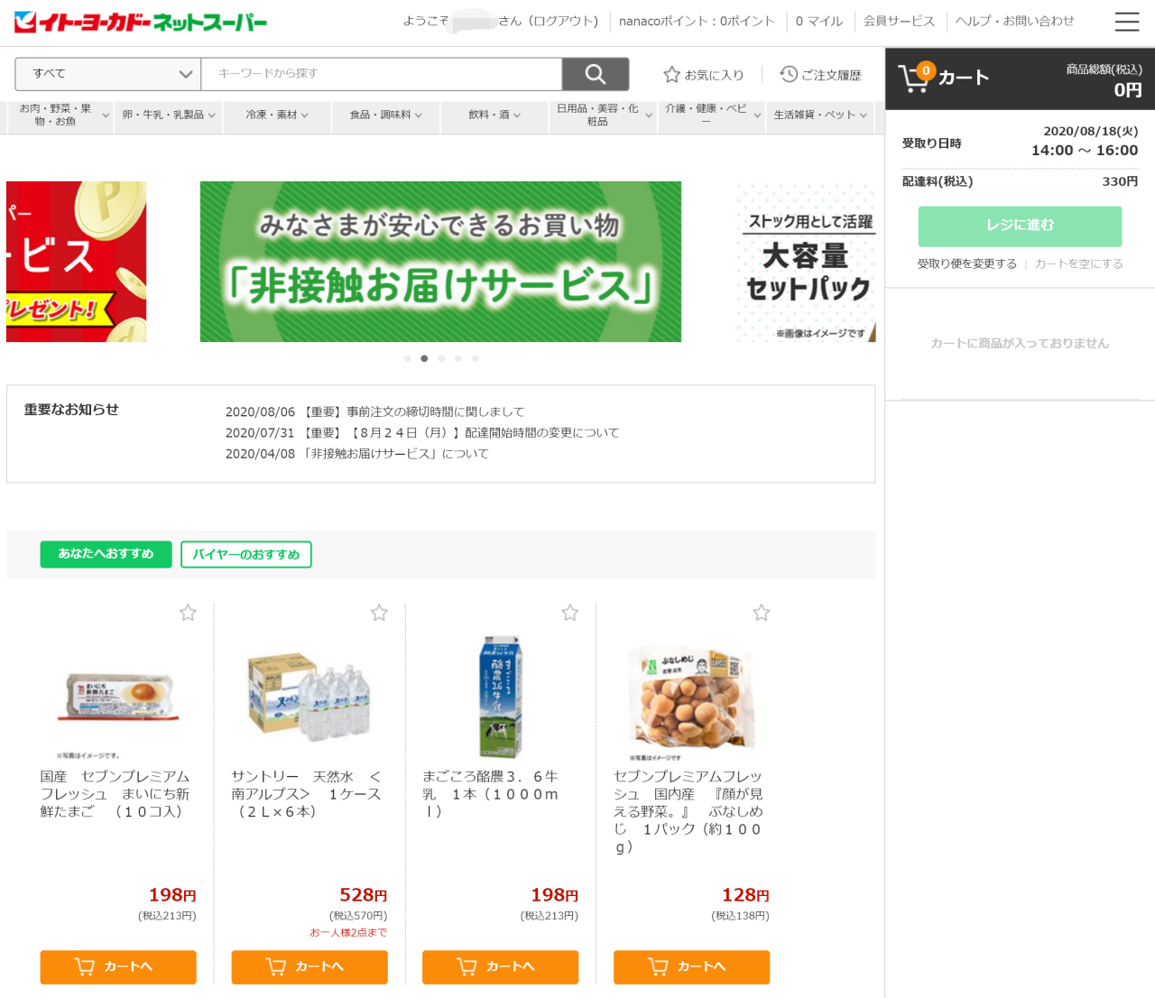 ネットスーパーでユーザー登録ができました。どうやらおま国制限はないようです。素晴らしい。みんなで使おうイトーヨーカドー。