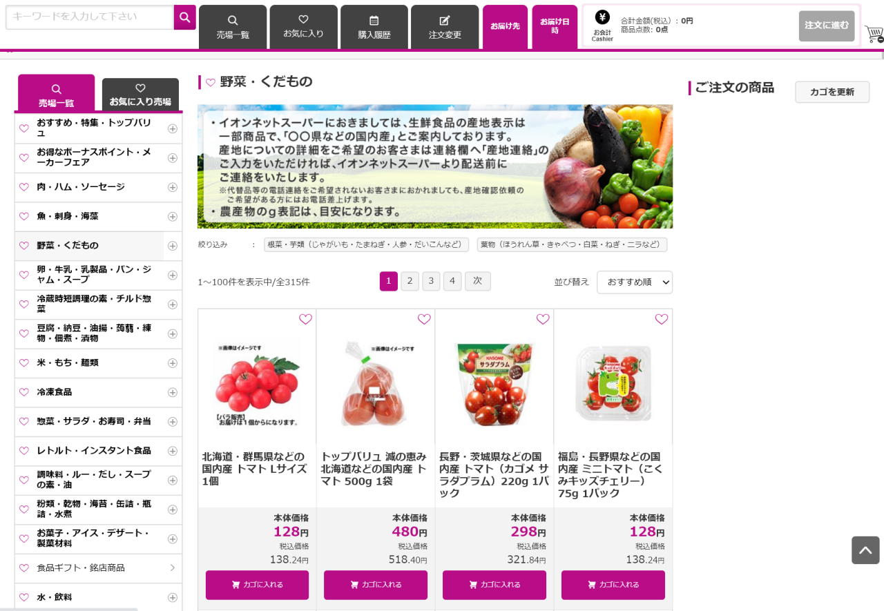 先に配送時間を選ばないと商品の一覧が見えないシステムのようです。とても使いにくいですが、利用できるのはここだけですし、贅沢は言えません。