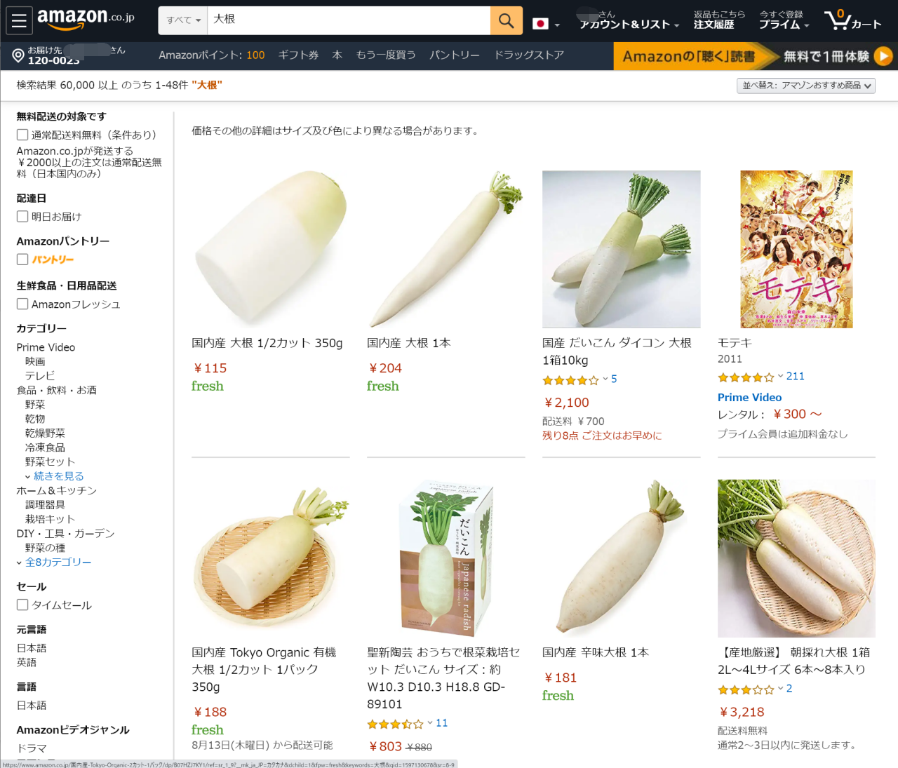 他に何かないか探してみたところ、アマゾンがアマゾンフレッシュというサービスをやっていました。