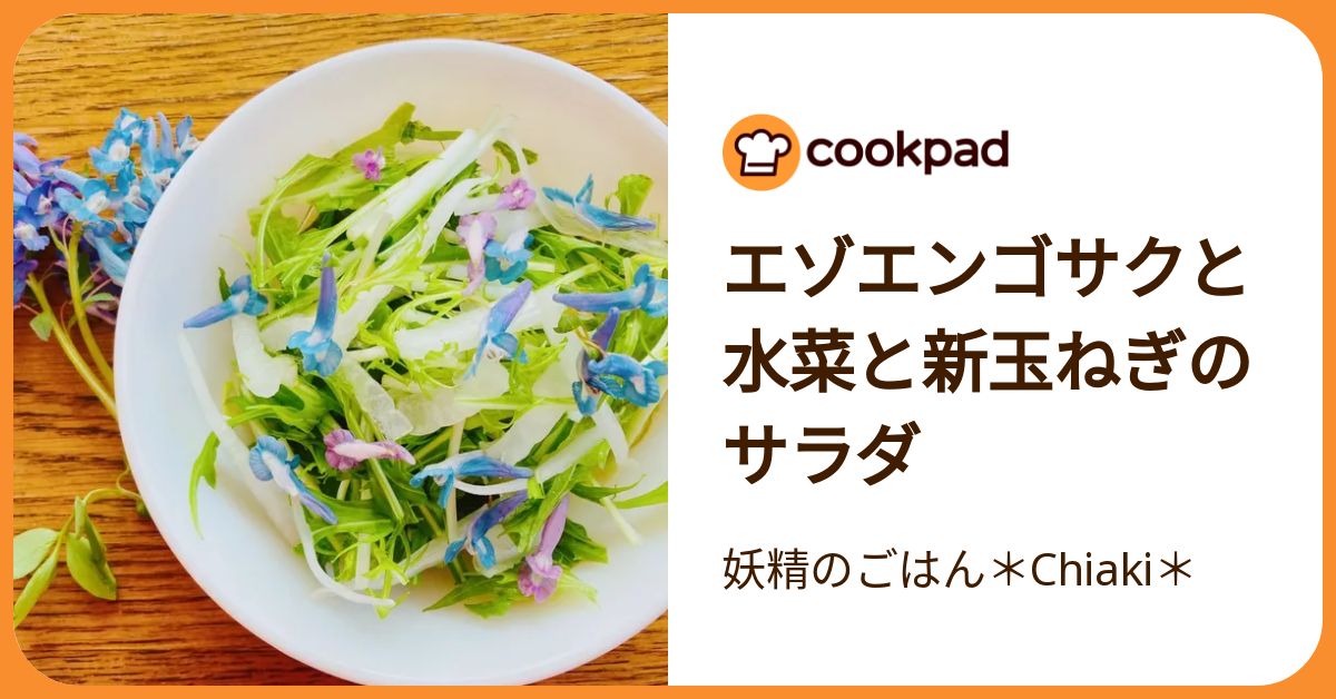 エゾエンゴサク、水菜、新玉ねぎのサラダ
